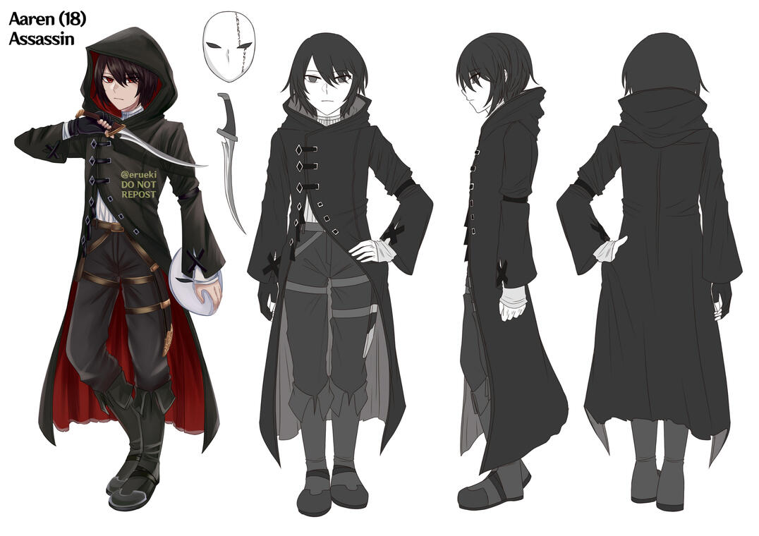 You will receive one colored fullbody (3/4 view) with front, side, and back view in grayscale